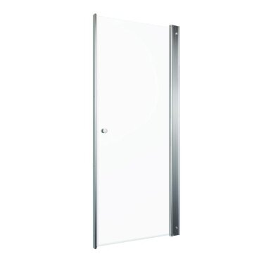 Распашная дверь в нишу Уно, прозрачное стекло, беспрофильная конструкция, пристенный профиль цвета хром. Для установки без поддона. Круглая массивная хромированная ручка.