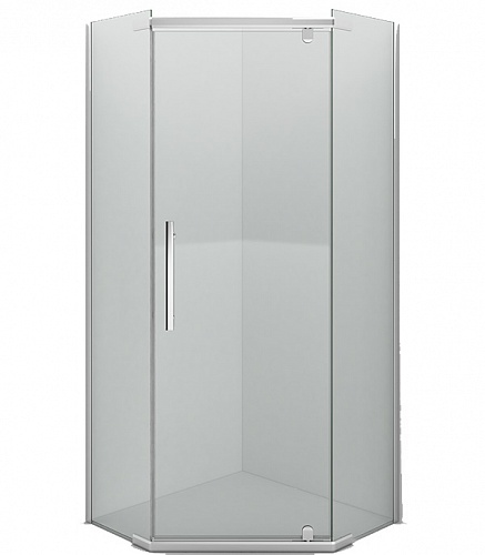 Конструкция легкая и прозрачная. Это узкие хромированные профили и прозрачные стекла. Пятиугольная форма душевых ограждений – это тренд последних сезонов. Такое пространственное решение гораздо интереснее, чем простая прямоугольная конструкция. Пропорции ванной комнаты видоизменяются, а интерьер приобретает новое звучание. У этого ограждения нет избыточных элементов. Алюминиевый профиль, стеклянные секции и одна распашная дверца. Но смотрится уголок очень элегантно за счет лаконичности линий и чистоты дизайна.