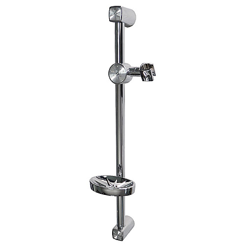 Душевая стойка с мыльницей , хромированная с сатеновыми вставками , произведена из нержавеющей стали и высокопрочного пластика АБС , устойчивой к агрессивному воздействию внешней среды и механическим деформациям, Хромированная поверхность не подвержена механическим повреждениям, а ее глянцевый блеск будет радовать в течение всего срока службы. держатель для душа с механической фиксацией и регулировкой по высоте. Расстояние между настенными креплениями регулируется путем обрезания штанги , что позволяет использовать в процессе монтажа отверстия, имеющиеся в стене. Размеры : высота штанги 670 мм, глубина 55 мм, диаметр трубы 25 мм, диаметр основания крепления 37 мм, длина мыльницы 130 мм, вес - 0,700 кг , объём - 0,00460 м3.