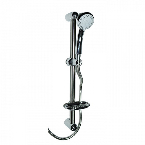 В комплекте душевая штанга, мыльница, шланг, лейка, крепления, держатель душевой лейки.