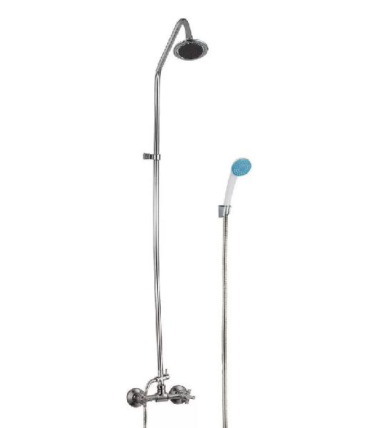 Регулирование напора воды и температуры производится посредством классических вентилей, расположенных внизу. Верхняя поворотная душевая лейка «Тропический дождь» обеспечивает комфортный прием душа с эффектом массажа.