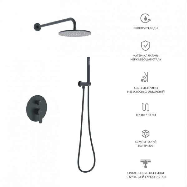 Душевой комплект NARDIS 2R с внутренней частью, ручной, верхний душ, черный матовый, BERGES