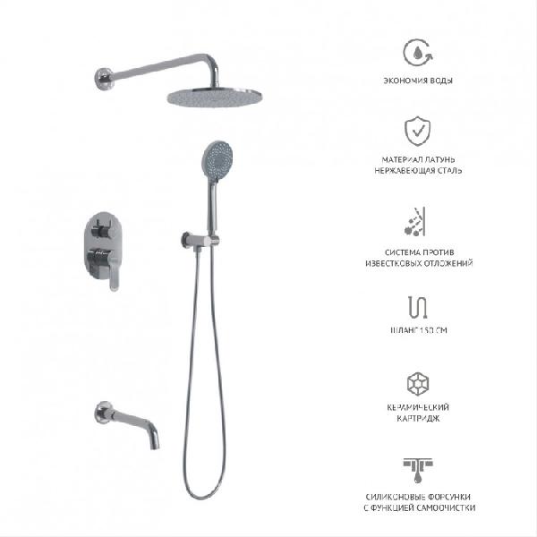 Душевой комплект NARDIS 3R с внутренней частью, ручной, верхний душ, излив, хром сильвер, BERGES