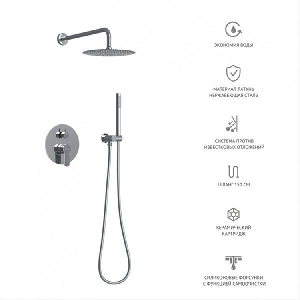 Душевой комплект VENTAS 2R с внутренней частью, ручной, верхний душ, хром сильвер, BERGES