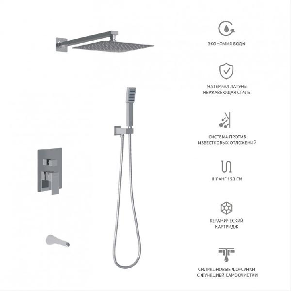 Душевой комплект VENTAS 3S с внутренней частью, ручной, верхний душ, излив, хром сильвер, BERGES