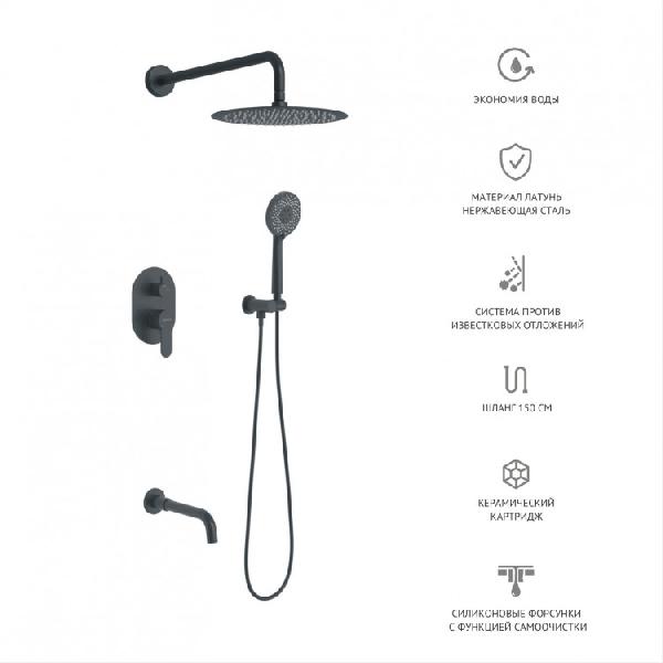 Душевой комплект VENTAS 3R с внутренней частью, ручной, верхний душ, излив, черный матовый, BERGES