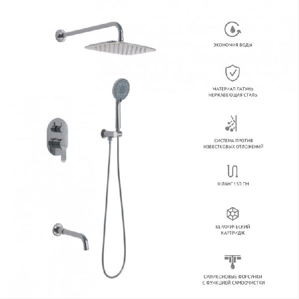 Душевой комплект VENTAS 3O с внутренней частью, ручной, верхний душ, излив, хром сильвер, BERGES