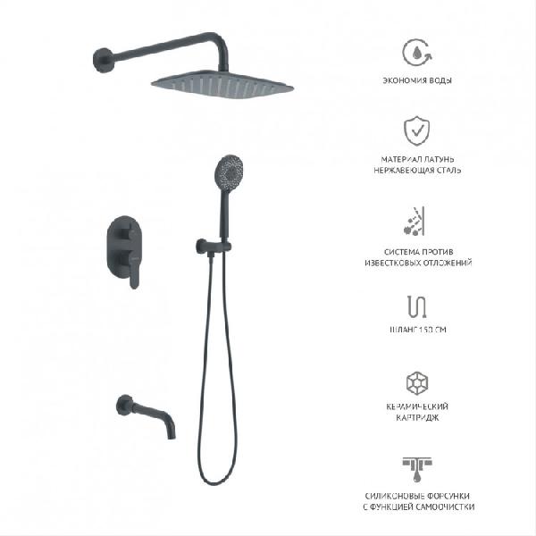 Душевой комплект VENTAS 3O с внутренней частью, ручной, верхний душ, излив, черный матовый, BERGES