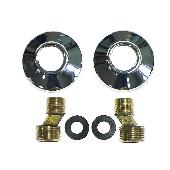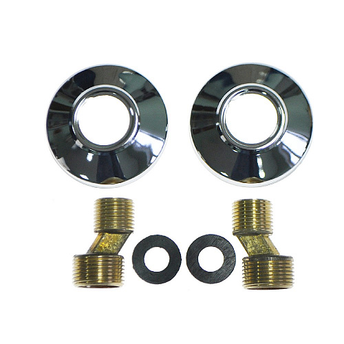 Комплект латунный: 2 эксцентрика + 2 чашки. Укомплектованные декоративными хромированными чашками резьбовые эксцентрики, обеспечивают беспроблемное подключение к водопроводу сантехнических смесителей. Применение изделий дает возможность компенсировать неточности при размещении водорозеток либо резьбовых патрубков стального водопровода, скорректировать положение смесителя в пространстве. Материалом фитинга, изготовленного методом горячего объемного штампования, служит высококачественная латунь. Гальванопокрытие соединителей – никелевое, чашек – хромовое.