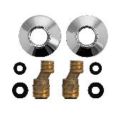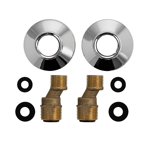 Комплект латунный: 2 эксцентрика + 2 чашки. Укомплектованные декоративными хромированными чашками резьбовые эксцентрики со встроенным резиновым кольцом, обеспечивают беспроблемное подключение к водопроводу сантехнических смесителей. Применение изделий дает возможность компенсировать неточности при размещении водорозеток либо резьбовых патрубков стального водопровода, скорректировать положение смесителя в пространстве. Материалом фитинга, изготовленного методом горячего объемного штампования, служит высококачественная латунь. Гальванопокрытие соединителей – никелевое, чашек – хромовое.