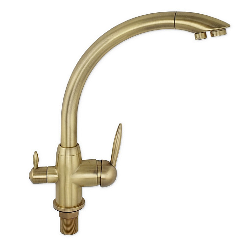 MAGNUS - Смеситель кухонный под БРОНЗУ , шаровый , с двойным выпуском воды для фильтра, материал латунь.
