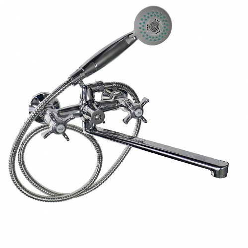 Смеситель хромированный в ванную/душевую комнату с поворотным длинным плоским изливом. Кранбуксы металлокерамика 1/2, ручки крест поворот на 90?, Дутый, большой корпус с м/к переключением подачи воды, переходник - подставка для лейки , аэратор для экономии воды, чашки нержавеющая сталь, гайки и эксцентрики из нержавейки. Габаритные размеры: ширина 150 мм, высота 140 мм, длина излива 280 мм, диаметр чашки 60 мм, длина шланга 150 см, двухрежимная лейка d= 75 мм, вес - 1,550 кг, объём - 0,00330 м3.