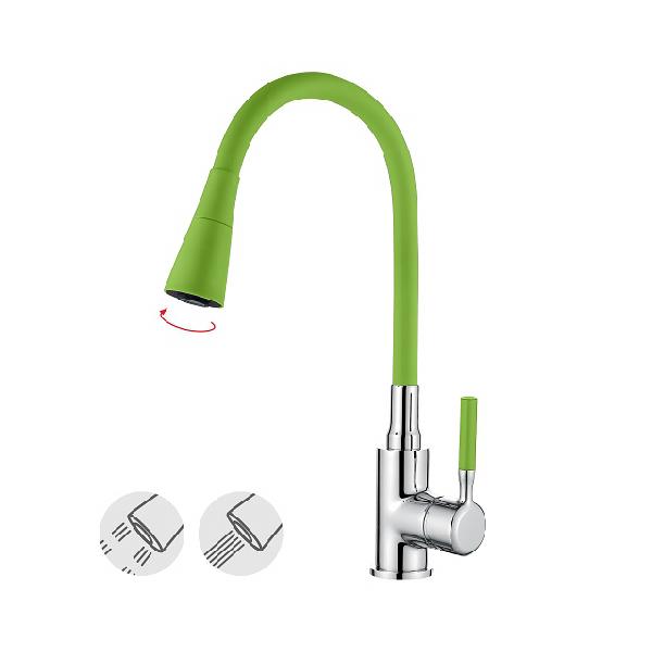 A9890K-1 Смеситель для кухни ACCOONA с силиконовым изливом Цвет: зеленый+хром (10)