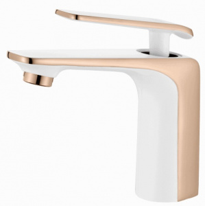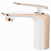 A90123GR Смеситель для умывальника ACCOONA с гайкой латунь 35мм Цвет: белый+розовое золото (10)