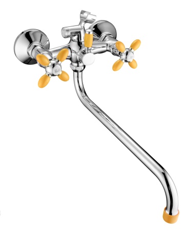 A7182H Смеситель для ванны ACCOONA с поворот изливом 300мм дивертор в корпусе цинк/хром/желтый (10)