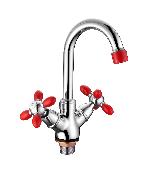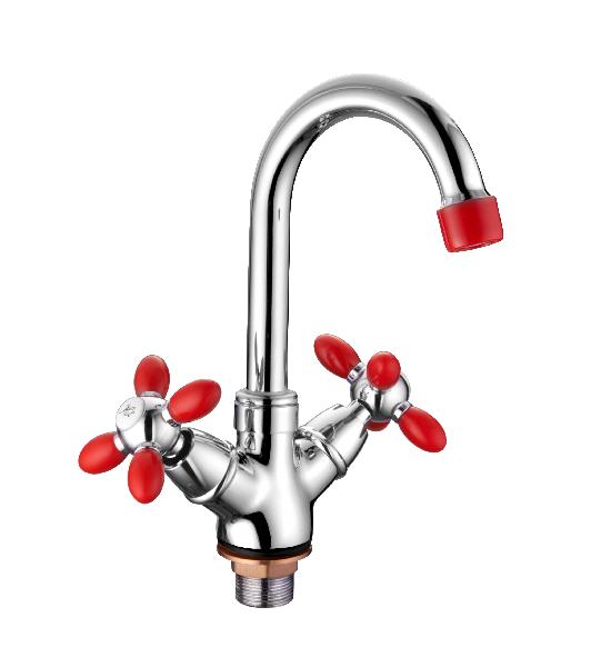 A9482N Смеситель для умывальника ACCOONA с гайкой хром/красный (10)