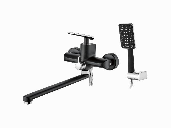 A71123F Смеситель для ванны ACCOONA с длинным изливом 350мм див. в корпусе Цвет: черный+хром (10)
