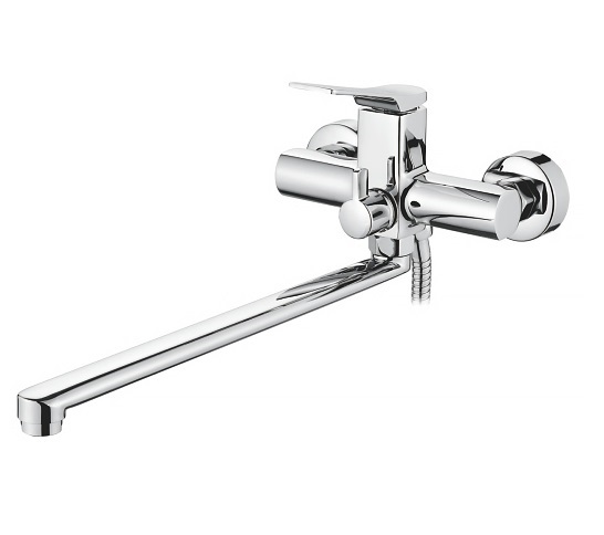 Смеситель Accoona дополнит ванную комнату. Он оснащён длинным изливом, одним рычагом и дивертором.