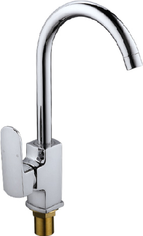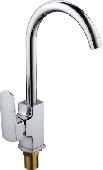 Однорычажный смеситель с длинным высоким изливом устанавливается на раковину. Современная хромовая сантехника станет украшением любой кухни.