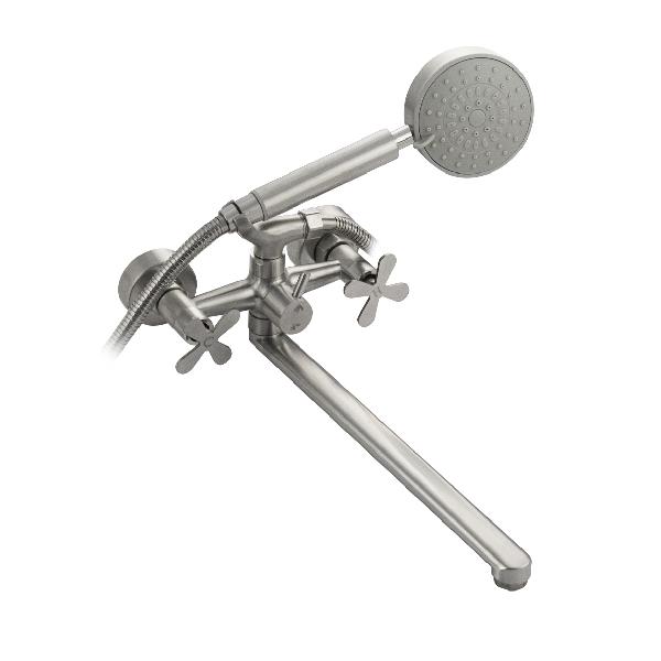 9340 BRIMIX Смеситель ванна длинный излив нержавейка САТИН