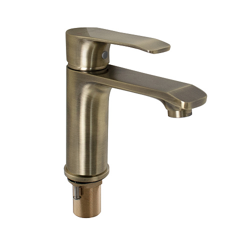 Смеситель для раковины, латунный корпус под цвет состаренной БРОНЗЫ , с коротким изливом, литой корпус, литая ручка, шаровый, Крепление резьба- гайка, картридж d=35 мм. Аэратор для экономии воды. Габаритные размеры: высота 155 мм, длина 165 мм, длина излива 125 мм, диаметр посадочного седла 50 мм, длина резьбы 50 мм, длина подводки 500 мм, вес - 1,650 кг, объём - 0,00340 м3.