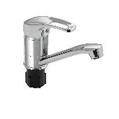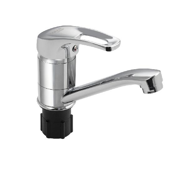 Смеситель для кухонной мойки и раковины, хромированный, с коротким, поворотным изливом, шаровый, ручка с дыркой. Крепление резьба - гайка, картридж d= 40 мм. Аэратор для экономии воды.