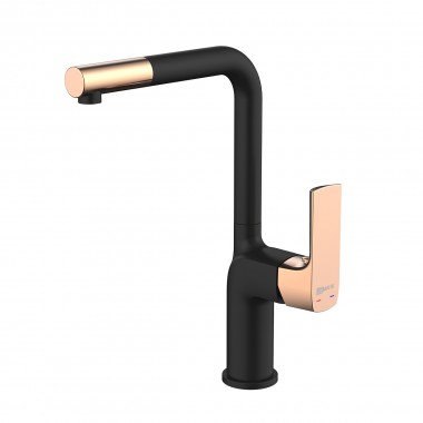 Смеситель для кухни с поворотным изливом LEMARK URSUS LM7205BLR черный/ розовое золото