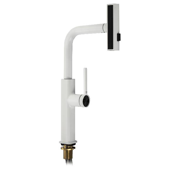 8263 MAGNUS Cмеситель кухня шаровый Г - образный излив вытяжной, корпус из латуни БЕЛОГО цвета