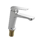 Смеситель для раковины, латунный квадратный корпус, хромированный, с коротким изливом, литой корпус, литая ручка, шаровый. Крепление резьба - гайка, картридж d = 40 мм. Аэратор для экономии воды. Габаритные размеры: высота 155 мм, длина излива 160 мм, диаметр посадочного седла 45 мм, длина резьбы 50 мм, длина подводки 500 мм. Вес - 1,21 кг, объём - 0,00300 м3.