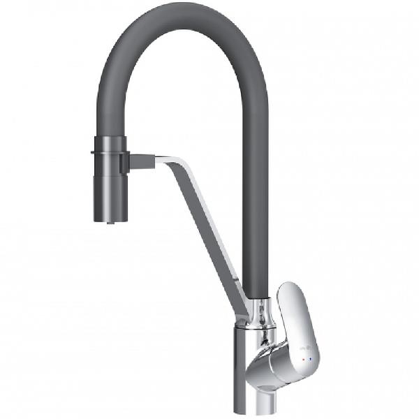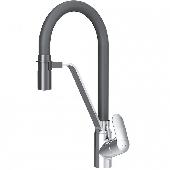 Гибкий излив значительно расширяет зону использования смесителя, гарантирует легкий уход за мойкой и наполнение емкостей любого размера.