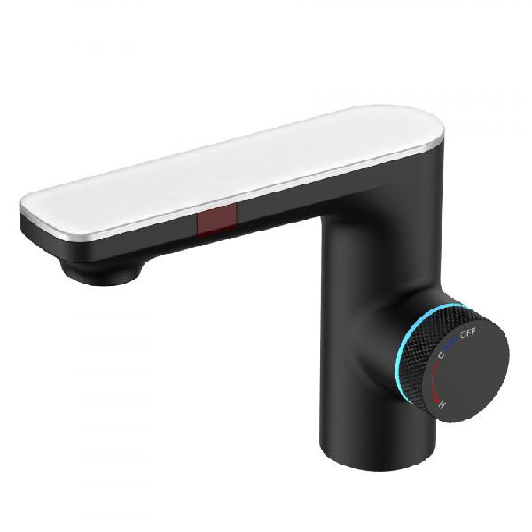 Смеситель для раковины MORANS сенсорный с термостатом, черный матовый, BERGES