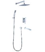Душевой комплект Lemark Contest идеально подойдет для оснащения ванной комнаты в стиле хай-тек. Комплект выполнен из латуни с хромовым покрытием, стойким к повреждениям и коррозии. Верхняя поворотная панель размером 200х200 мм работает в режиме «Тропический душ». Гибкий душевой шланг снабжен удобной лейкой 43х48 мм. В смеситель встроен керамический картридж SEDAL с функцией экономии воды. Излив для ванны с каскадным регулятором расхода воды монтируется на стену.
