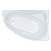 Угловая асимметричная ванна «Николь» белого цвета с эргономичной внутренней волнообразной организацией в современном минималистичном исполнении.