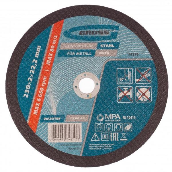 Круг отрезной по мет. 230х2,0х22,2 мм GROSS (число резов 89)