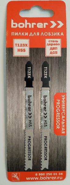 Пилки для лобзиков Bohrer универсальные T123X HSS 100/75мм шаг 1,2-2,6 мм Прогрессор 2шт в уп