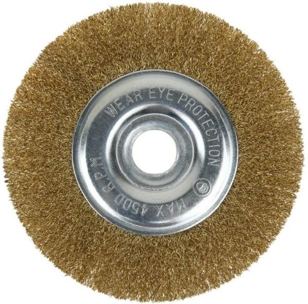 Щетка для УШМ 150мм посадка 22,2мм, плоская латунированная витая проволока MATRIX
