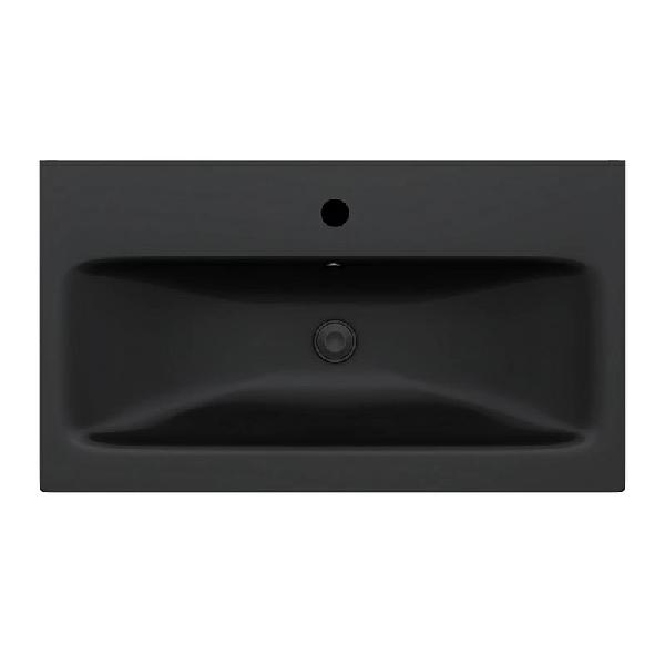 Раковина мебельная, керамическая, 75 см, встроенная, GEM цвет: ЧЁРНЫЙ матовый M90WCC0752BM