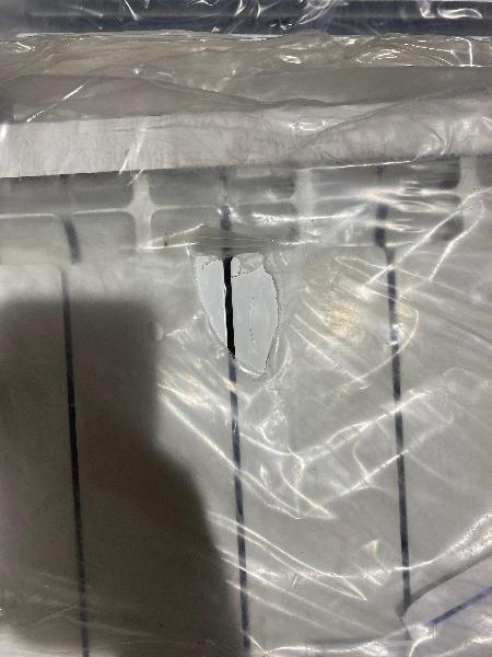 Секционный алюминиевый радиатор STOUT ALPHA 350. Царапина на лицевой стороне радиатора.