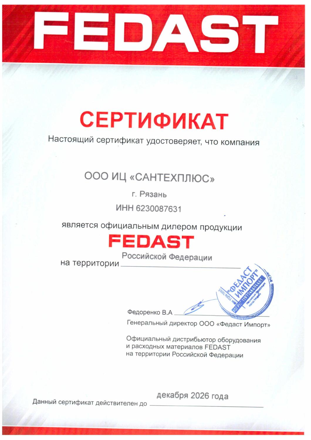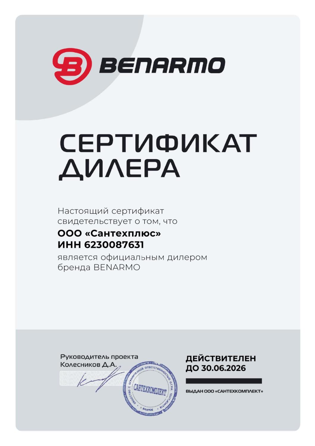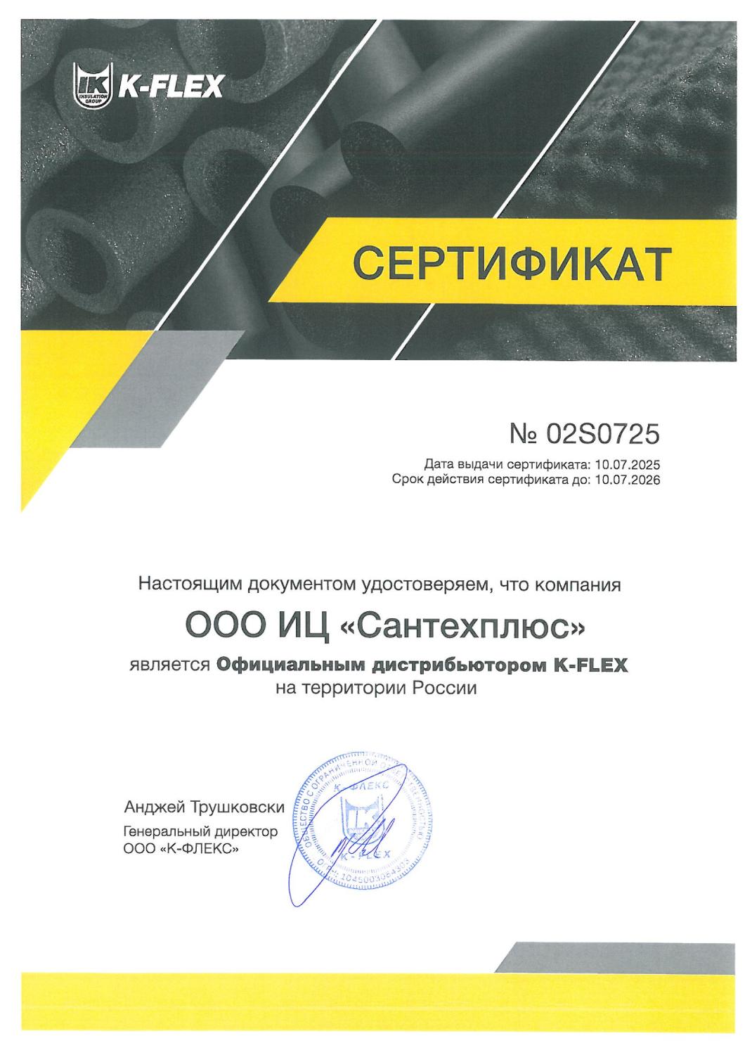 Сертификаты СЦ "Сантехплюс"