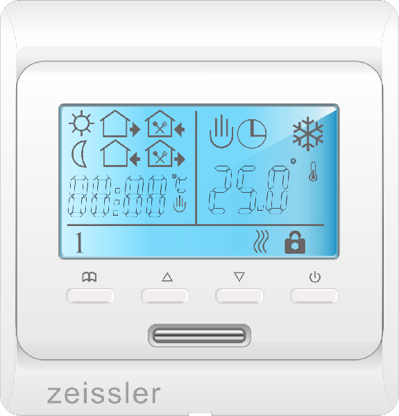 Термостат ZEISSLER M07.13 предназначен для управления климатическим оборудованием по заданному пользователем расписанию. Он оборудован встроенным датчиком температуры воздуха и имеет возможность присоединения выносного датчика "RTC 03"(поставляется отдельно) для регулирования температуры пола или теплоносителя. Наличие этих датчиков позволяет использовать его в одном из трех режимов: