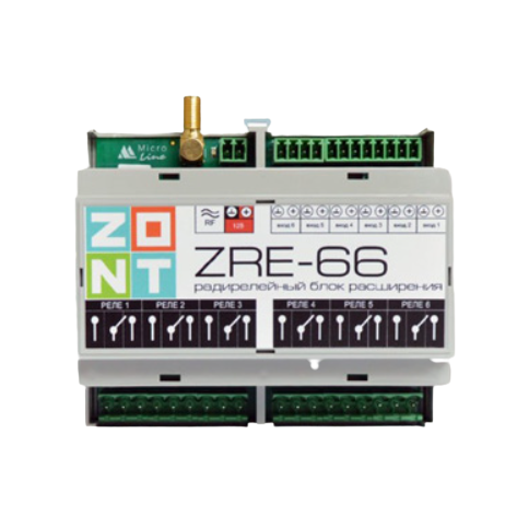 На объектах с многоконтурной системой отопления, где системой автоматизации могут быть охвачены несколько сооружений, для расширения аппаратных возможностей универсальных контроллеров H2000+ PRO, H2000+ и контроллера умного дома ZONT C2000+ применяется радиорелейный блок расширения ZONT ZRE-66.