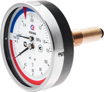 Термоманометр РОСМА ТМТБ-41Р.3 0-1,6 МПА L=100ММ G1/2" 150С радиальный 100 мм