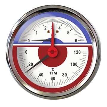 Термоманометр аксиальный 63мм 6 бар "(0℃-120℃) TIM Y-63T-6