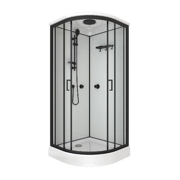 ТРИТОН ДК "Прайм-Блэк М3 90*90А" 1/4 круга,низ.подд.,черный,прозрачное, ДН4 (3 места+сифон D90мм)
