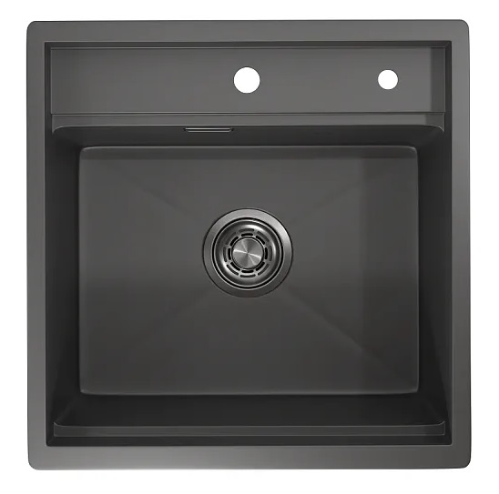 Мойка кухонная KS-5051 ГРАФИТ МАТОВЫЙ 500х510 Kitchen Space (ролл-мат,дозатор, мет. сифон), GRANULA