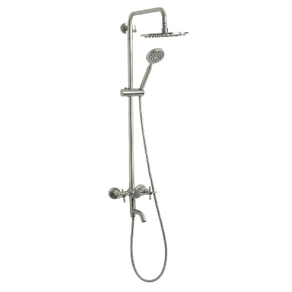 9238 MAGNUS Смеситель + стойка душевая "тропический душ" с двумя лейками нерж.