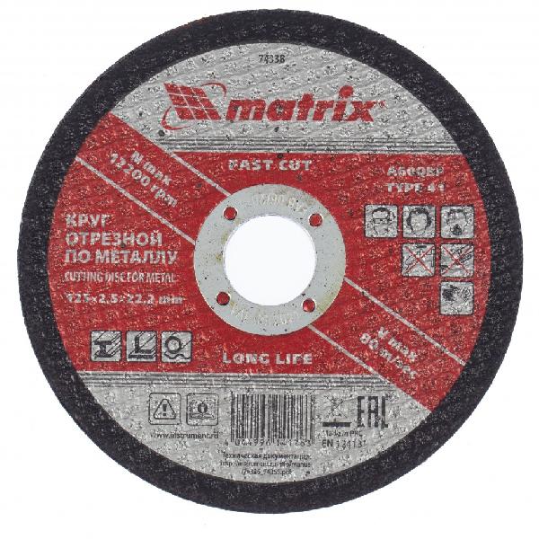 Круг отрезной по мет.125х2,5х22,2 мм MATRIX (число резов - 43)