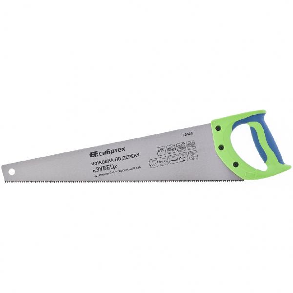 Ножовка по дереву "Зубец" 450мм 7-8 TPI зуб 2D каленый зуб 2-х компонентная рукоятка Сибртех
