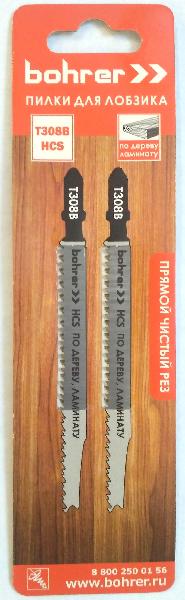 Пилки для лобзиков Bohrer по ламинату T308B HCS 115/90 мм шаг 2,2мм combi прямой чистый рез
