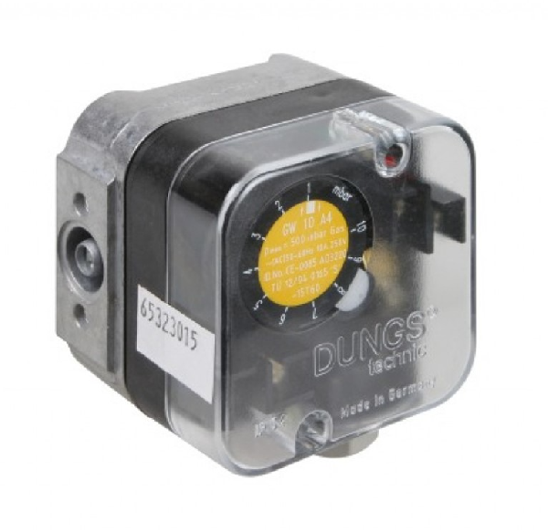 Диапазон установки от 2,5 до 50 мбар. Коммутируемые цепи 10 А, 250 В. Устанавливается на газопроводе перед газовым аппаратом. При падении давления газа ниже заданного уровня отключает аппарат, разрывая электрическую цепь управления без выхода аппарата на сбой по наличию пламени. После возобновления подачи газа аппарат автоматически возобновляет работу.